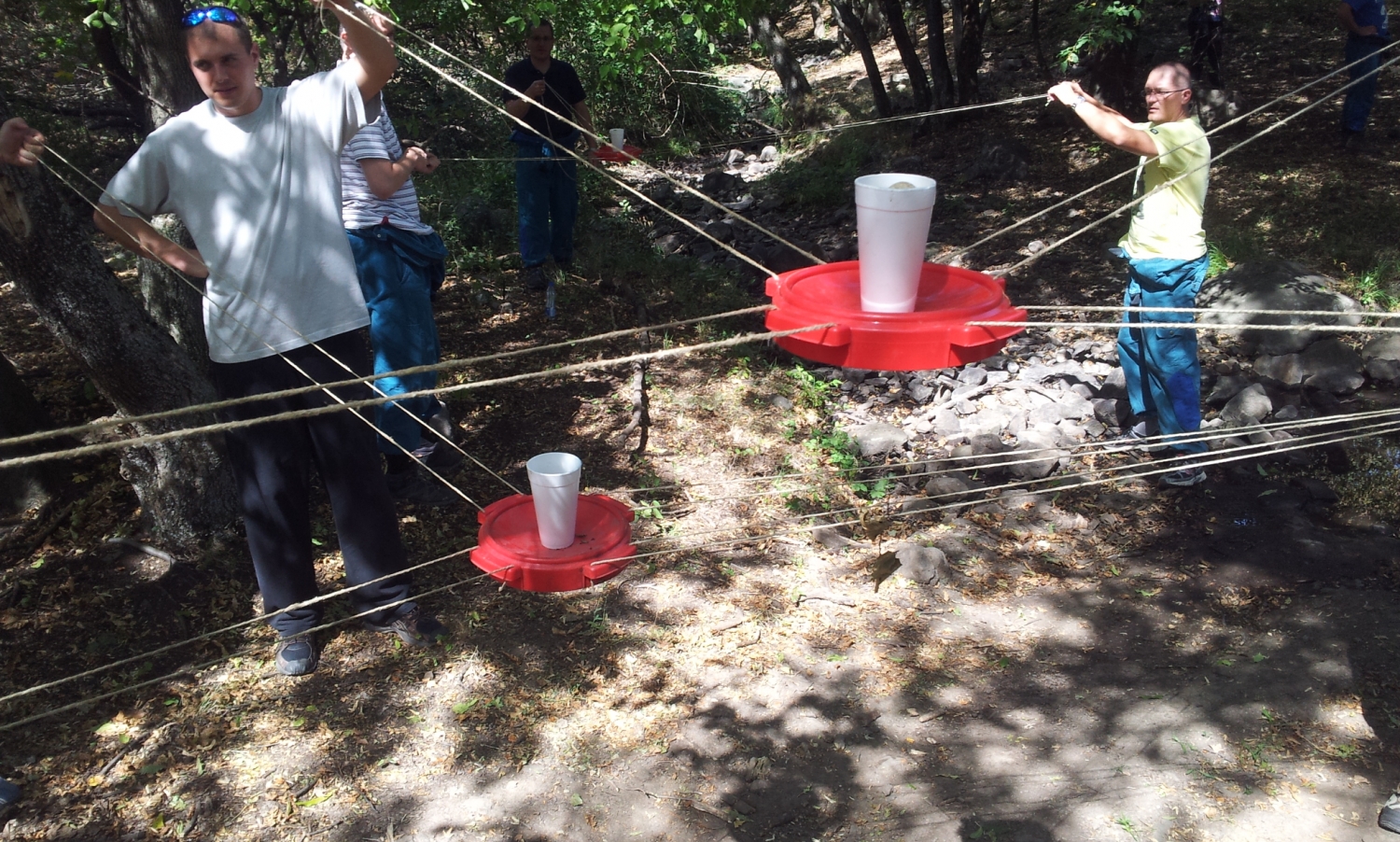 Az UFO egy olyan feladat, ahol a résztvevők csak a közösen összehangolt munkájuk és a megfelelő kommunikációjuk segítségével képese sikerre vinni a küldetést. A csapatoknak kötelek segítségével, egyensúlyozva kell felemelniük az „UFO -t”, majd együttesen mozgatni fel, le, jobbra, balra, olykor különböző akadályokon keresztül. Az UFO helyzetére, stabilitására nagyon ügyelniük kell, mivel sérült az üzemanyag tartálya és borulás esetén végzetessé válhat a hibázás.